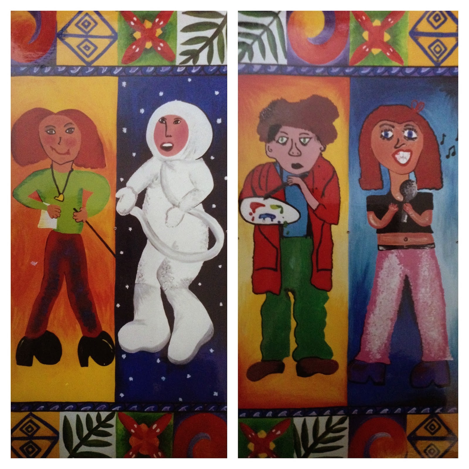 While working at this school, I had the pleasure of coaching pupils who designed, drew and painted two series of murals. One series was based on the famous children's